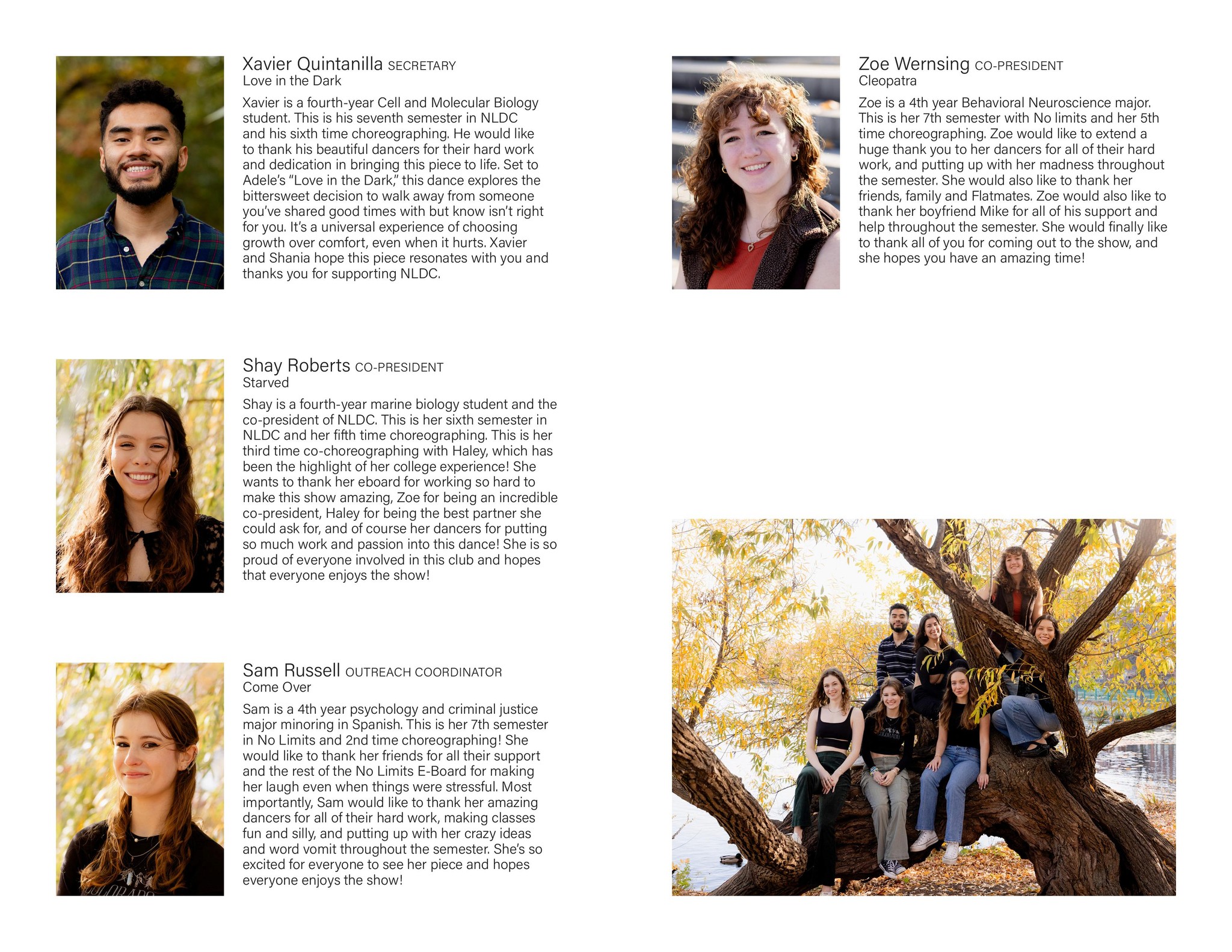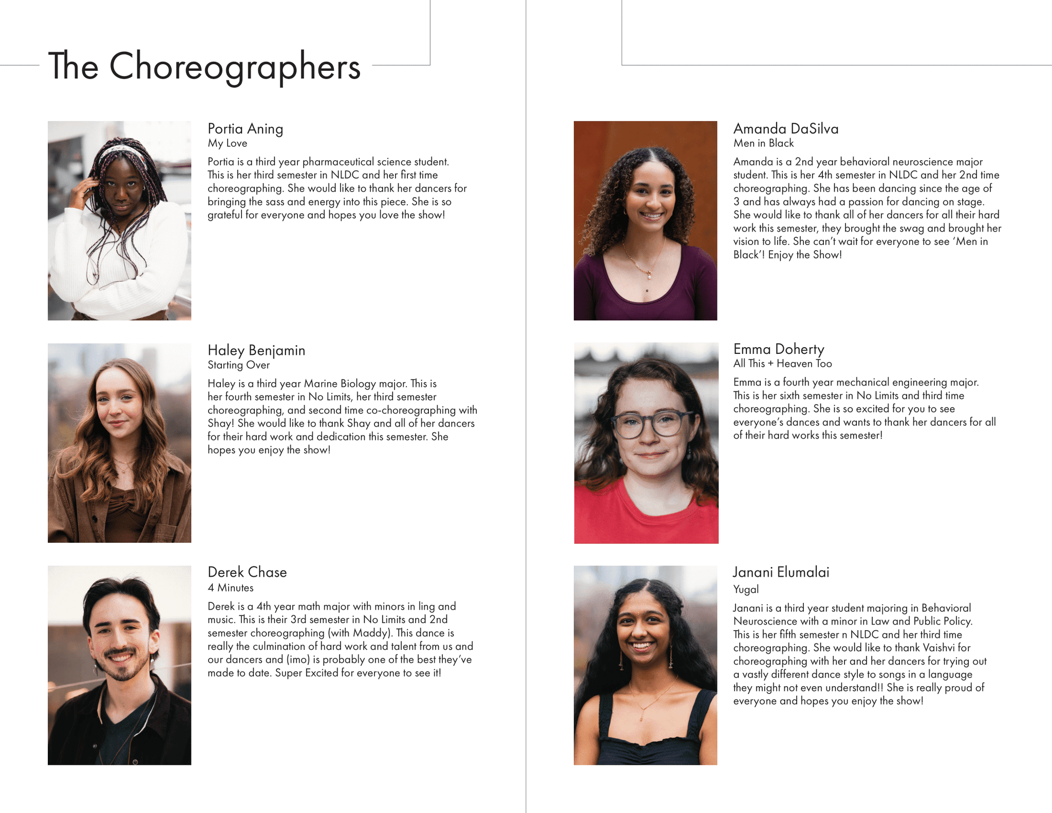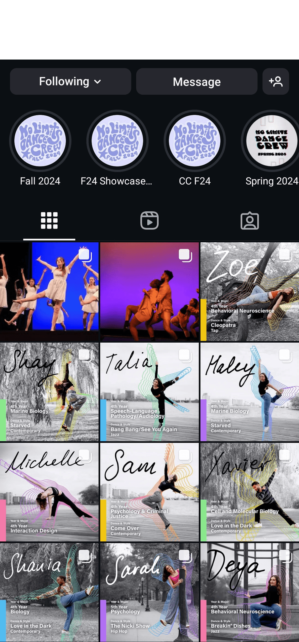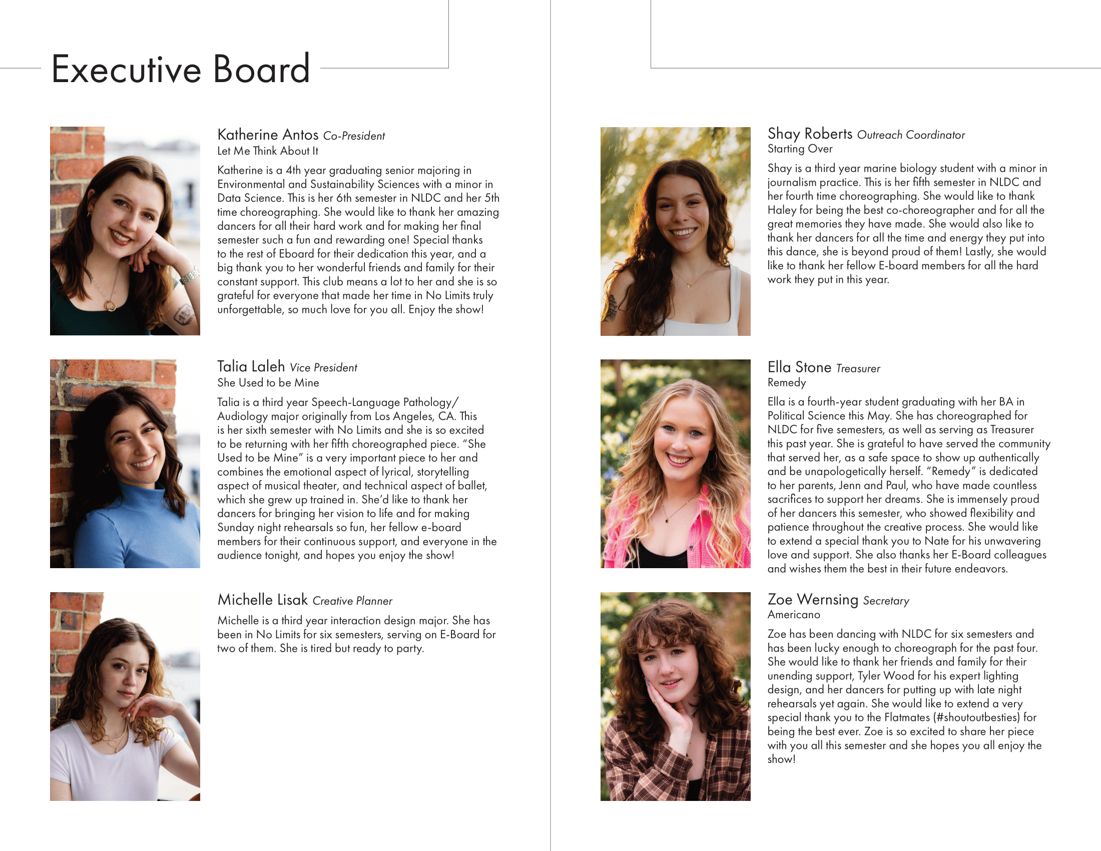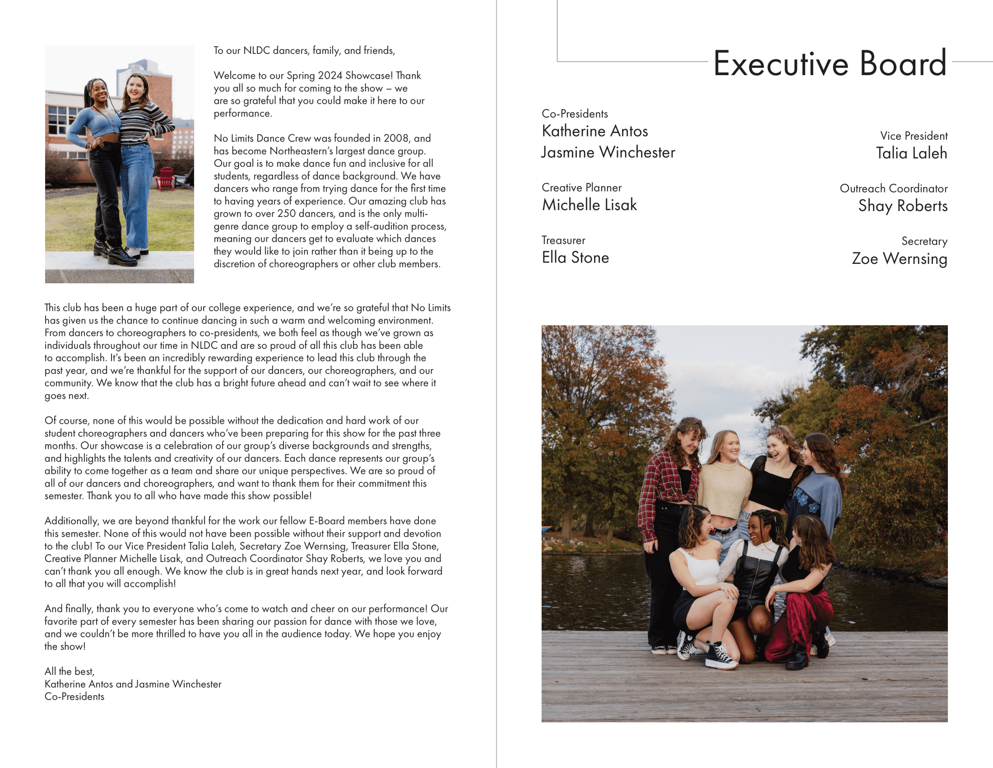 I created all creative materials for Northeastern University's dance club, No Limits Dance Crew, including merchandise, show programs, social media posts, YouTube video thumbnails, and more. Each semester had a different theme tying all designed elements together.