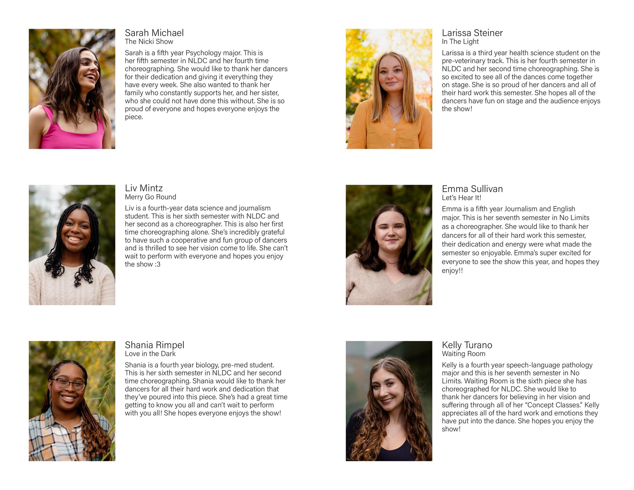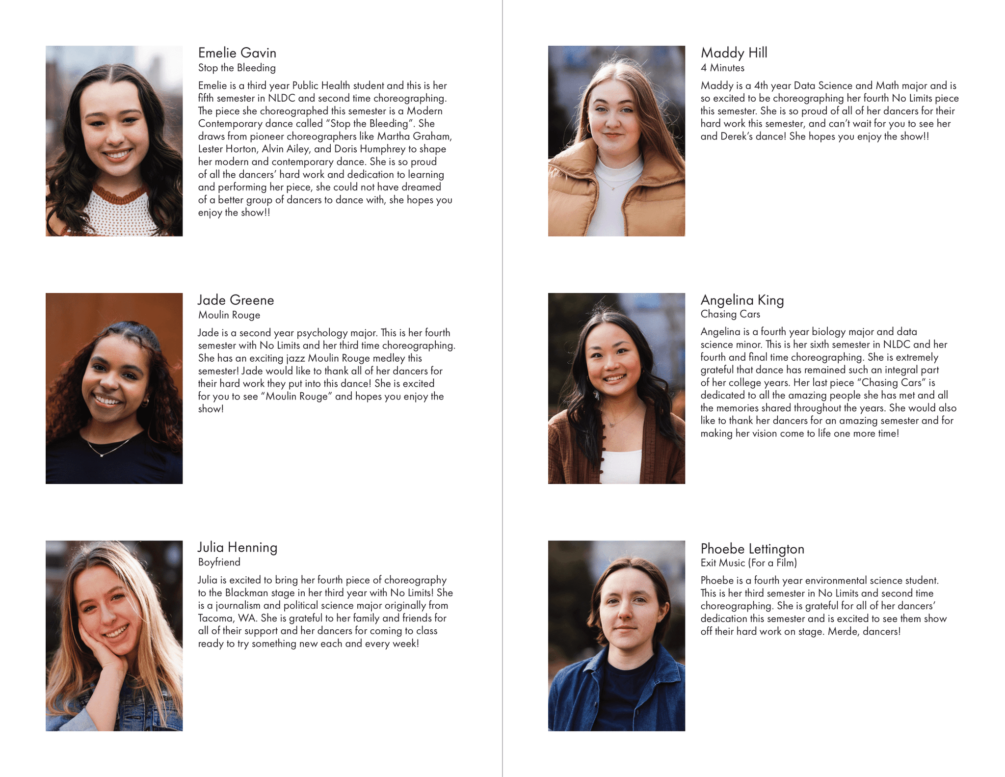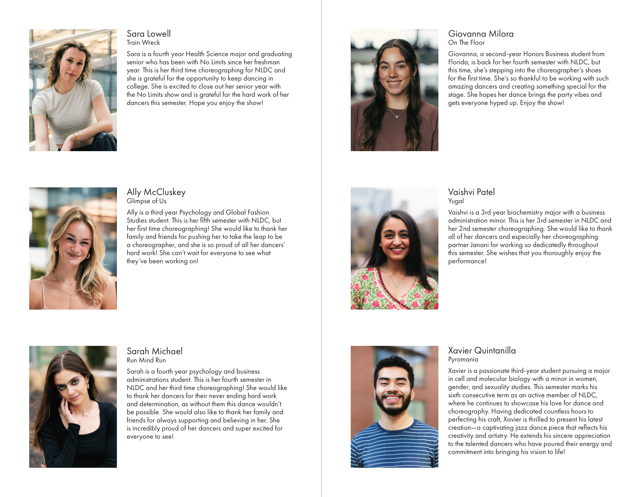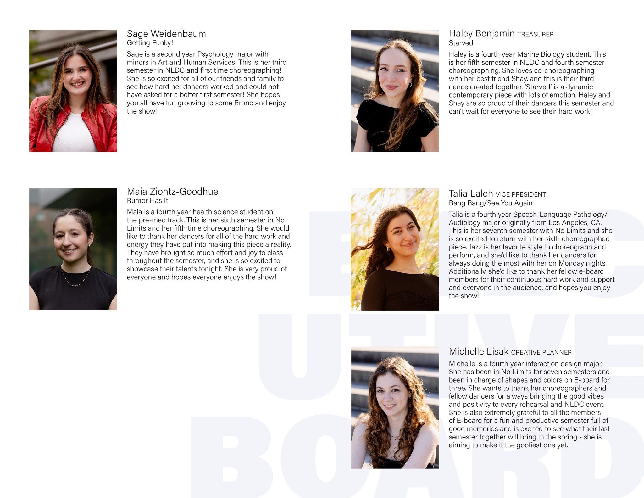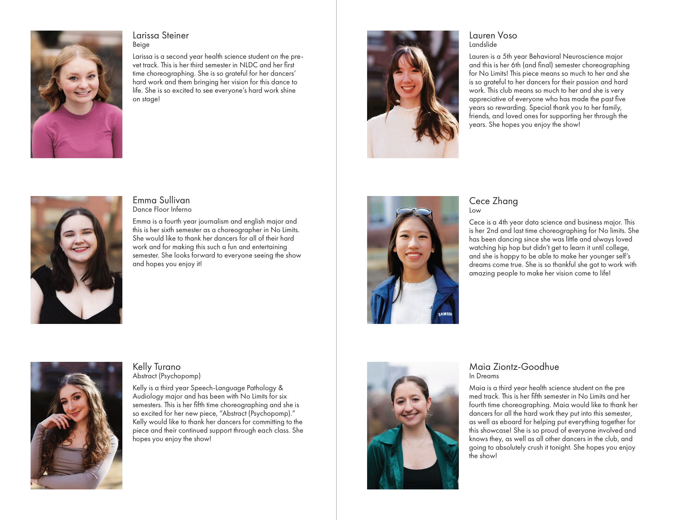 I created all creative materials for Northeastern University's dance club, No Limits Dance Crew, including merchandise, show programs, social media posts, YouTube video thumbnails, and more. Each semester had a different theme tying all designed elements together.